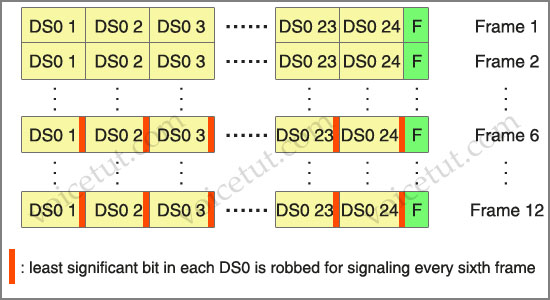 The T1 CAS signaling looks at every 6th & 12th frames for signaling information, these bits are referred to as the A and B bits. The A and B bits can represent different signaling states or control features (on hook or off hook, idle, busy, ringing, and addressing)